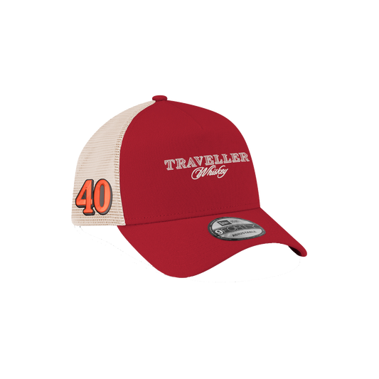 Justin Allgaier #40 Traveller Whiskey Crimson New Era 9FORTY AF Trucker Cap