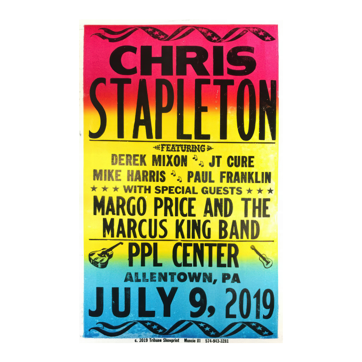 Limited Edition letterpress poster from 7/9/19 in Allentown, PA. Designed by Tribune Showprint.