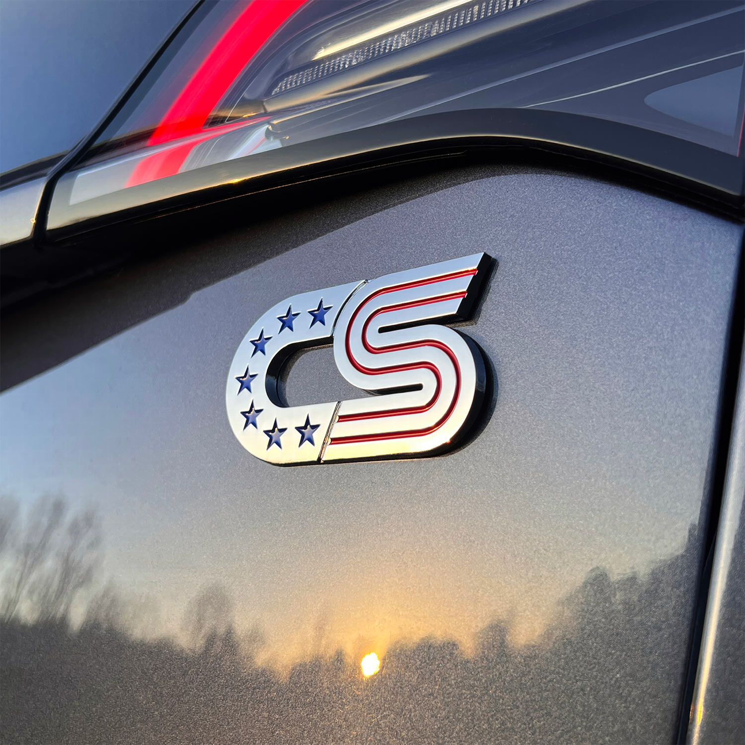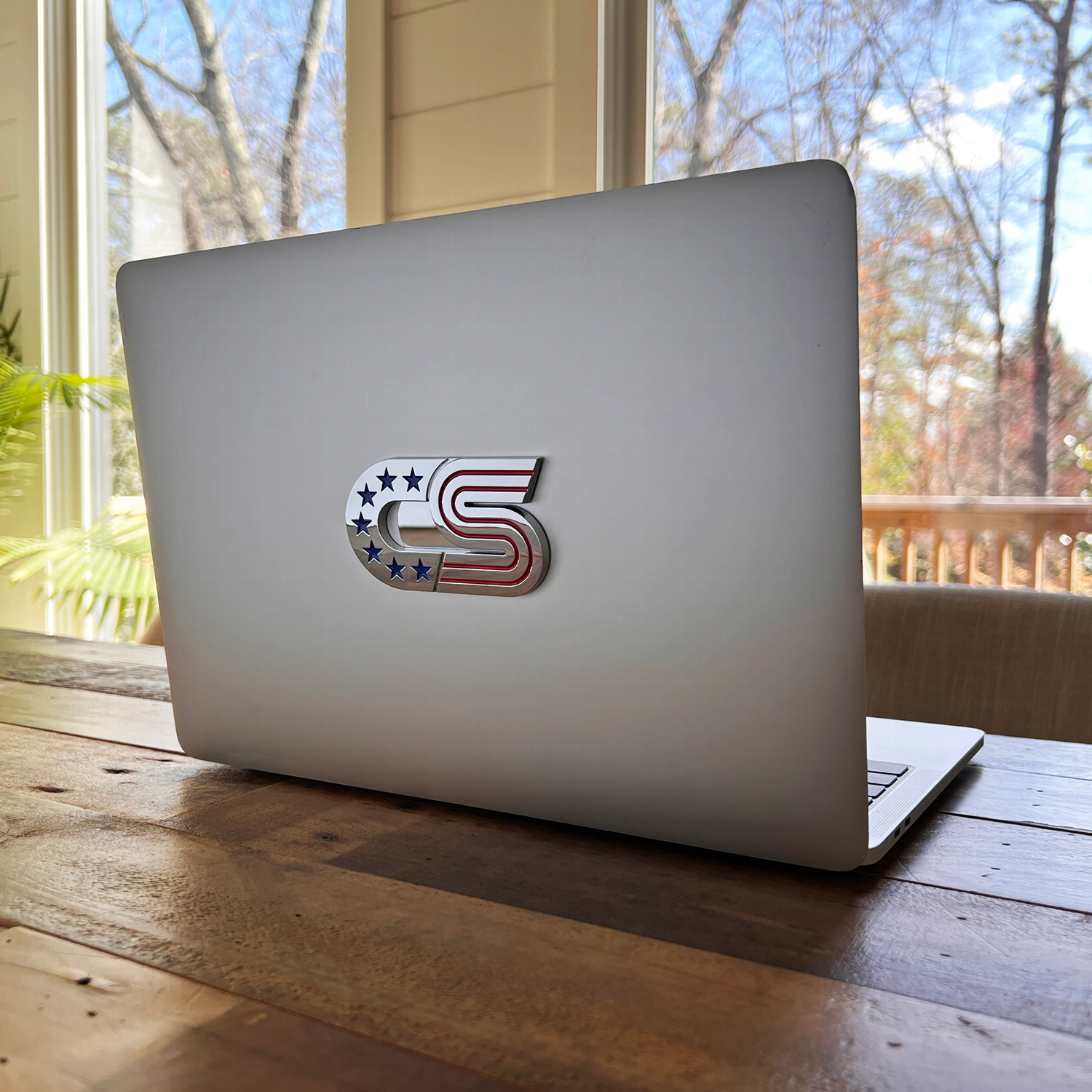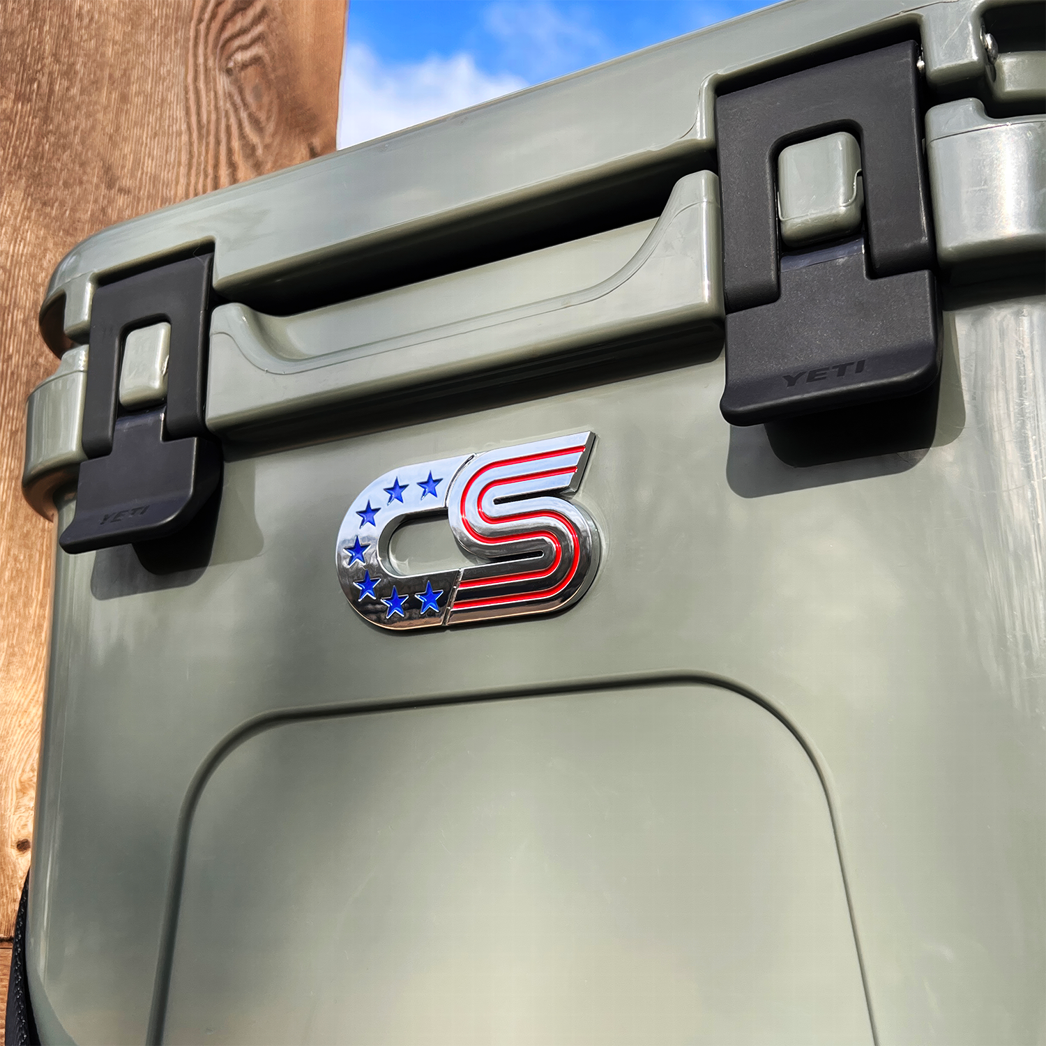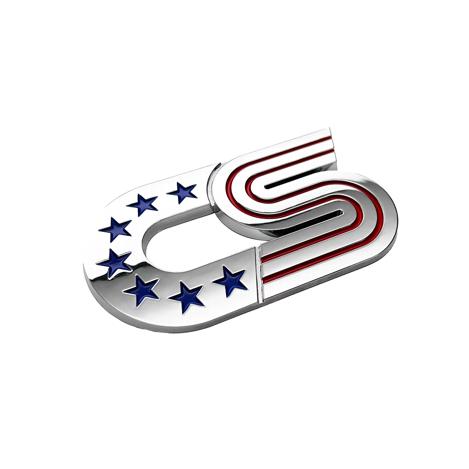 Chrome badge featuring the Stars and Bars logo, produced by Grateful Fred.  Constructed of high-quality ABS plastic, the same materials used on every major car mfg. badge.  Guaranteed to be cold, rain and snow proof, and safe to apply and remove from all cars and surfaces.   These badges are designed to stand outwhile blending in.