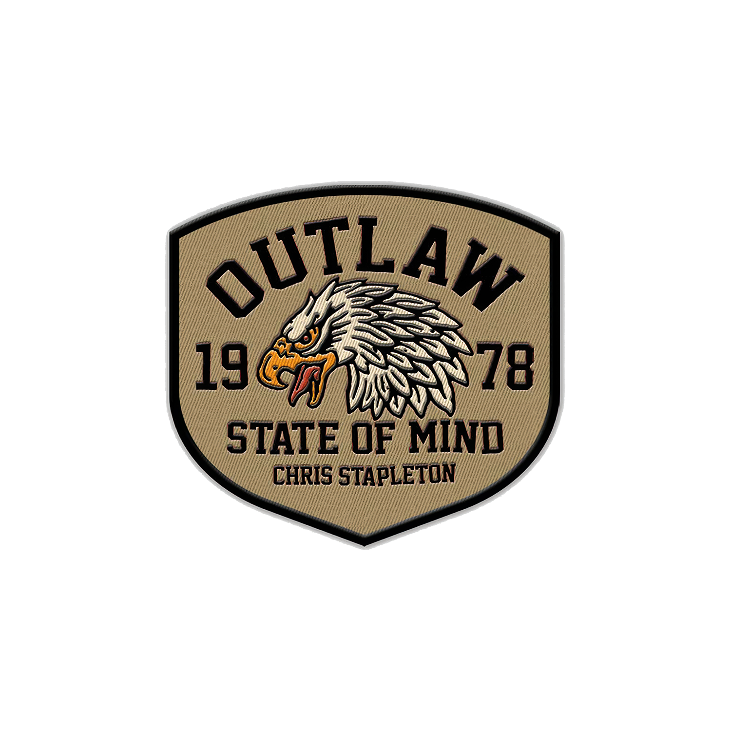 3"5. wide 100% embroidered patch w/ iron-on backing featuring Outlaw State of Mind Eagle design
