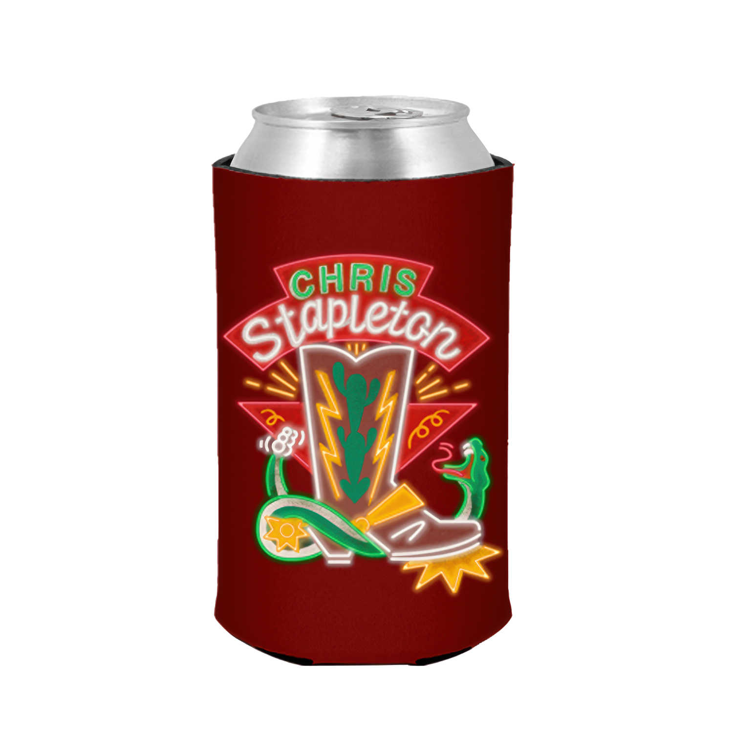 16 oz. yellow sublimated can cooler featuring Chris Stapleton Neon Boot design