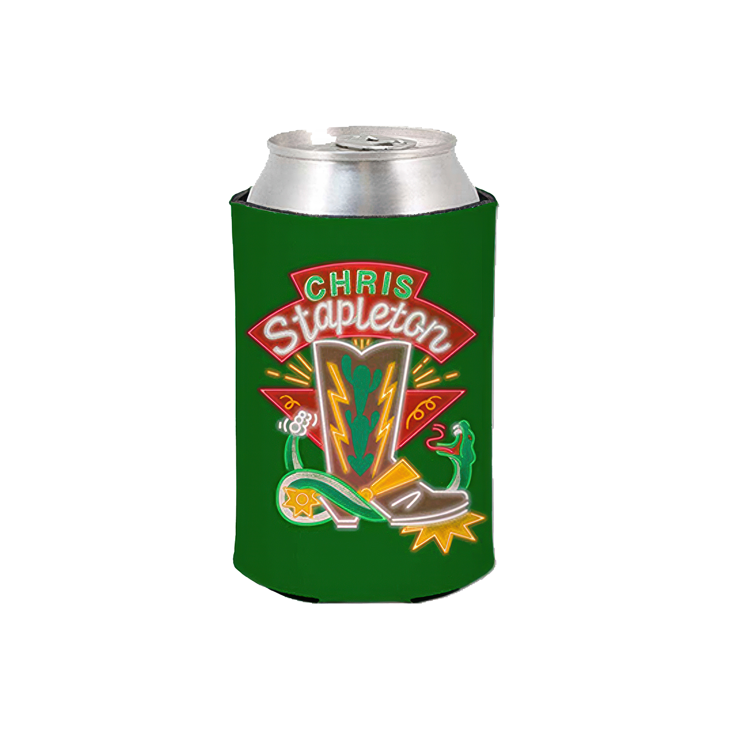 12 oz. green sublimated can cooler featuring Chris Stapleton Neon Boot design