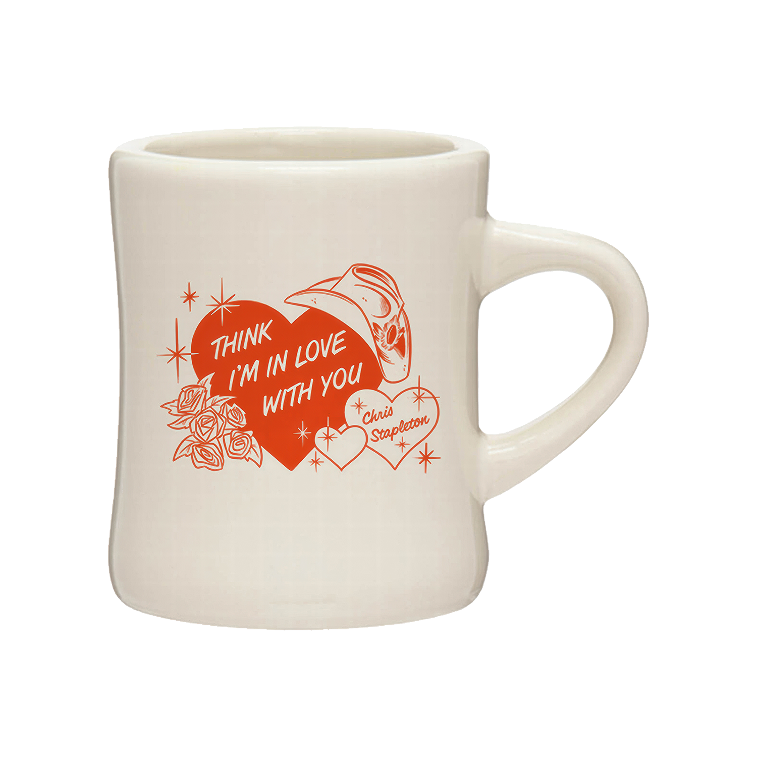 Natural 10oz diner style mug featuring "Think Im In Love With You" design on front